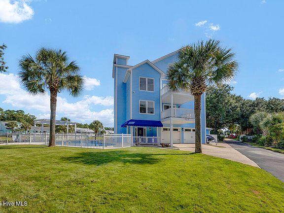 Welcome to Inlet Point Harbor, a gated waterfront community where coastal living shines. This luxury residence spans over 5,000 sq. ft. and is truly a boater's dream, offering 50 feet of dock frontage, a 10,000 lb boat lift, a floating dock for two jet skis, and a well-lit dock area just steps from the back door. From here, you're a short ride to Masonboro Island or ''dock and dine'' options in Carolina Beach, with shopping, dining, and entertainment just minutes away by land. The home's interior is designed for versatility and comfort with an elevator that services the first 3 floors. The ground floor is ideal for in-law quarters, featuring a kitchenette, living room, bedroom suite, and screened porch. A 2-car garage with new epoxy flooring and an exterior storage room round it out. On the second floor, you'll find two guest rooms, plus a spacious en-suite bedroom and a family room with an attached office space — a potential second en-suite bedroom — two perfect options for anyone wanting a primary suite accessible by elevator. The third floor is light-filled and airy with a spacious living room, sunroom, breakfast nook, kitchen with a large walk-in pantry and reverse osmosis system, and access to multiple decks. A half bath and an additional bedroom or office complete this level. The fourth floor is reserved for the primary suite, offering panoramic water views, a large walk-in closet, and a spa-like bath with a double vanity, soaking tub, walk-in shower, and water closet. New sod is being added to the back yard, which has a sparkling saltwater pool. Fresh paint, a newer roof (2019), and newer HVAC systems (2021) add to the home's appeal. With multiple decks, abundant space, and stunning views, this home is a true boater's paradise. For information about our preferred lender and the incentives you may qualify for, please ask your agent to review the agent comments for additional details.