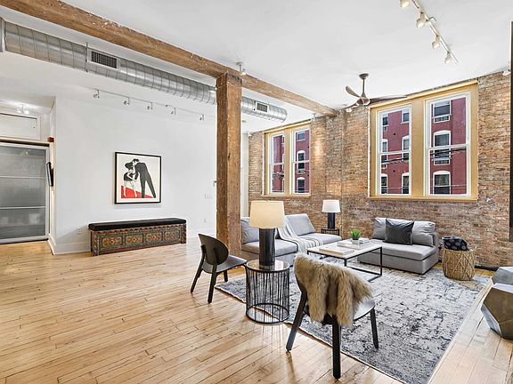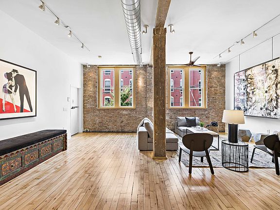 Step into a piece of Hoboken’s industrial past in this 2600 square foot 4 bedroom plus den, two and one half-bath floor-through loft. Originally built in the late 19th century, this former newspaper print and then Venetian blind factory is a rarely available repurposed loft that combines historic industrial character with stylish modern updates. The complete gut renovation in 2008 was carefully considered to feature the original exposed beams and brick that complement the expansive proportions and soaring ceilings that you find throughout this sprawling residence. Entering the loft leads you into a large living and dining area that is well suited for entertaining large parties while still maintaining defined open spaces to host intimate gatherings. The recently updated open kitchen and island is equipped with GE stainless steel appliances, shaker style cabinetry, white subway tiles and quartz countertops. The master bedroom has an entire wall of built-in closets and a 5-piece en-suite bathroom with floor-to-ceiling white Thassos marble, a custom double vanity with polished red tobacco travertine countertops, accents and tub surround, a two-person air jet soaking tub and a large frameless glass shower. Three more bedrooms, a media/den with oversized sliding doors, two zones of HVAC and a full size washer/dryer and generous storage throughout make this the ultimate loft apartment. Located on the second floor of a five-story building a short distance from the Path train to NYC and Washington Street shopping and restaurants and 1 block to rental parking. 227 Grand Street is self-managed co-op and each apartment has access to a freight elevator with very low carrying costs and taxes.