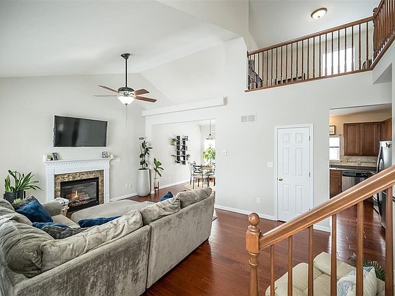 just steps away. Vaulted ceilings throughout the main level create an open, airy atmosphere, while the spacious kitchen is perfect for both everyday meals and hosting. Upstairs, enjoy the loft, two generously sized bedrooms and a full bath, offering plenty of space for family or guests. The community offers fantastic amenities including a pool, playgrounds, walking trails, and a stocked lake for fishing and recreational enjoyment. Located within the Wentzville School District, this home provides an excellent setting for family life in a vibrant neighborhood. Don’t miss your opportunity to make this stunning home yours – schedule a showing today!