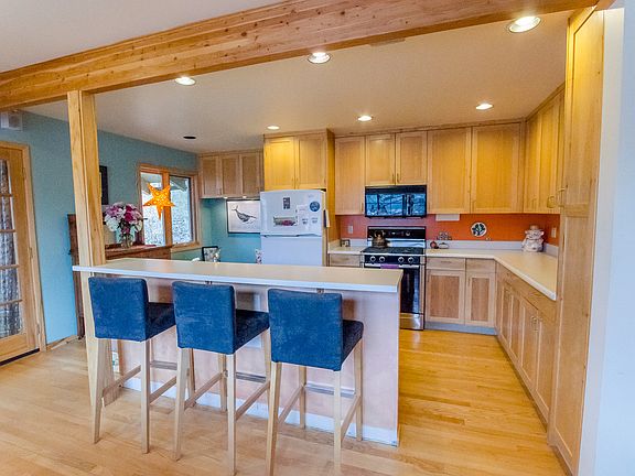 Looking for a quiet retreat with sun & a great view? Look no more! This 1343sqft single family home off the 3rd St stairs has that and more...with 3BR/2BA this home has been updated from foundation to roof. Beautiful kitchen with custom hickory cabinets opens to dining area and spacious living room with cozy wood stove and heat pump for warm winter nights. Enjoy the lovely grounds with established perennials, currants, and gooseberry bushes. Parking is easy with off-street carport included in the sale!