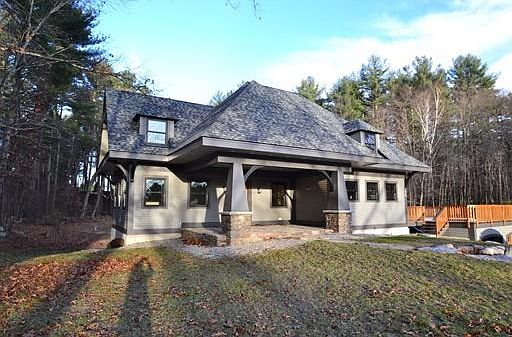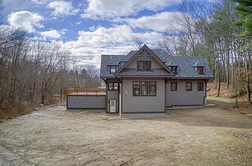 Stunning and unique Arts and Crafts design on a lovely treed 2.5 acre lot. Fabulous location on a beautiful winding country road & abutting the Wedgewood Pines Country Club and golf course. Here is the open floor plan everyone wants with sun filled rooms, high ceilings, and unobstructed views. Built with the best materials and energy efficient products this house meets the stretch code for 2018 and has a Hers index of 53 (great savings on your energy) extremely well insulated with R49 in the roof and R21 in the walls. Master bath has a gorgeous "Victoria Albert Soaking tub" and a large walk-in shower stall behind the double sinks. The floors in the house are Hickory, there is a study /office/ guest room on the first floor, four bedrooms on the 2nd floor and a full basement accessed through the garage and walk out. Great schools, bus picks up across the street, and charming village center, great ingredients for a peaceful life style.