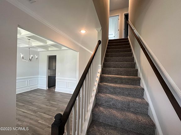 This plan features a large covered front porch that leads into foyer! Formal Dining with coffered ceiling leads past pantry and into Kitchen with center island/breakfast bar, granite counters and breakfast nook and access to covered deck! Great Room with electric fireplace! 1/2 bath finishes main floor! All bedrooms upstairs. Owners Suite with trey ceiling, soaking tub and walk-in shower and WIC. 3 other large bedrooms with WIC's, full bath and dedicated laundry room finish second floor!