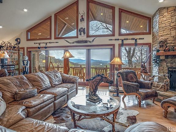 Peace and tranquility, that's what you will find perched conveniently overlooking Lake Chatuge and the beautiful Nantahala mountains. Perfectly situated on over 5 acres of beautifully landscaped grounds. As you enter the professionally decorated home your eyes will immediately be drawn to the breathtaking vista That unfolds before you. Inside the Home on the main level you will find an open concept great room that offers living dining and gourmet kitchen with the focal point being the wall of glass and stacked stone fireplace. Adjacent to the Living Room is the large owners suite, which includes his and hers bathrooms and walk-in closets. Follow the open staircase to the terrace level and you will find another great living space complete with wet bar and Gas fireplace. On each side of this space our bedroom suites, one of them being a second owners suite. Outside of the terrace level living space you will find A covered patio and hot tub that allows for uninterrupted mountain views. The grounds that surround the home are landscaped to allow you to comfortably explore and enjoy the gardens. Relax in the timber frame pavilion that takes in this Gorgeous view. This property consists of two adjoining lots totaling 5.03 acres. The home sits on 3.59 Acres and the extra lot that is above the main lot is 1.44 acres.