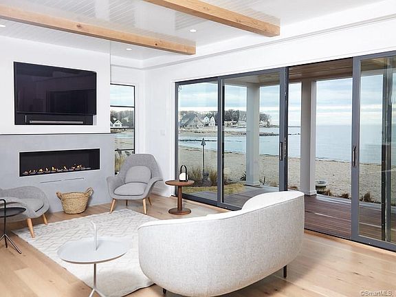 Available Aug 17-Aug 31 for $6000 per Week - New 1 Bedroom Smart House DIRECTLY ON THE BEACH completed in January 2018. Won the 2019 Westport CT Green Award this fresh Beach House has an ideal location on Westport's Old Mill Beach overlooking Compo Cove. Scandinavian modern furniture provides simplicity and elegance. Expansive waterfront views via 20' sliding doors from each floor! A TECKNOW SMART HOME fully sustainable with solar roof and Tesla Powerwall energy storage and ready for electric cars! Loads of inter-operable smart devices can be controlled via voice command. Enjoy auto Lutron Shades, Sonos, a Gas Fireplace and the latest appliances. Outdoor dining within steps of Westport's secret gem beach and a store across the street - Close to RR station, Compo Beach and Old Mill Pond. Live life at the fullest!