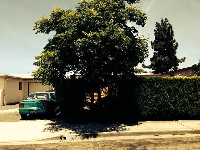 Easy care laminated flooring in several rooms. Fenced and gated front yard. Large covered patio. Garage has been converted to unpermitted third bedroom and half bath. Property appears to have a cracked slab.