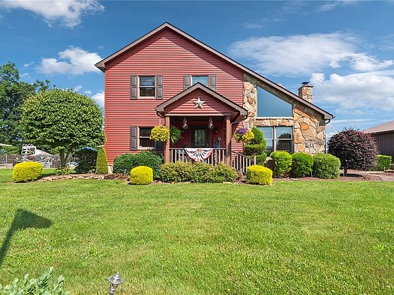 Luxury Living at your Country estate! 5 level acres are home to this meticulously cared for property. Plenty of space for entertaining or enjoying peaceful family time. Custom oak cabinetry; porcelain backsplash; granite counters & island; hardwood floors. Open dining; Sunken, vaulted 2 story living room w/gas fireplace. Family room w/cathedral ceiling, 2 skylites; gas fireplace. 1st floor Master en Suite Bedroom- walk in closet & full bathroom. 2 laundry rooms- main & lower levels. Upper level w/ loft overlooking living rm; 3 additional large bedrooms & another full bathroom. Game rm; 3rd full bathroom & storage room complete lower level. 6 vehicle garage plus room for toys; sep elec panel; water; wired for air compressor & welder. Brand new elec heat pump; back up elec furnace. Relax in your resort style 20x42' heated salt system inground pool; cushioned steps, tanning deck; spa whirlpool, spiral slide. Gather on covered back porch & take in views. Remarkable - This is a MUST SEE !