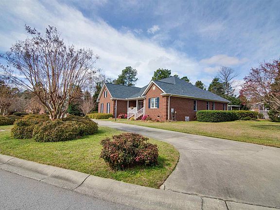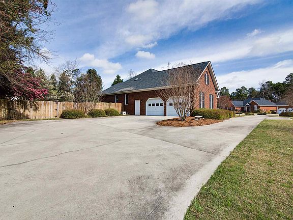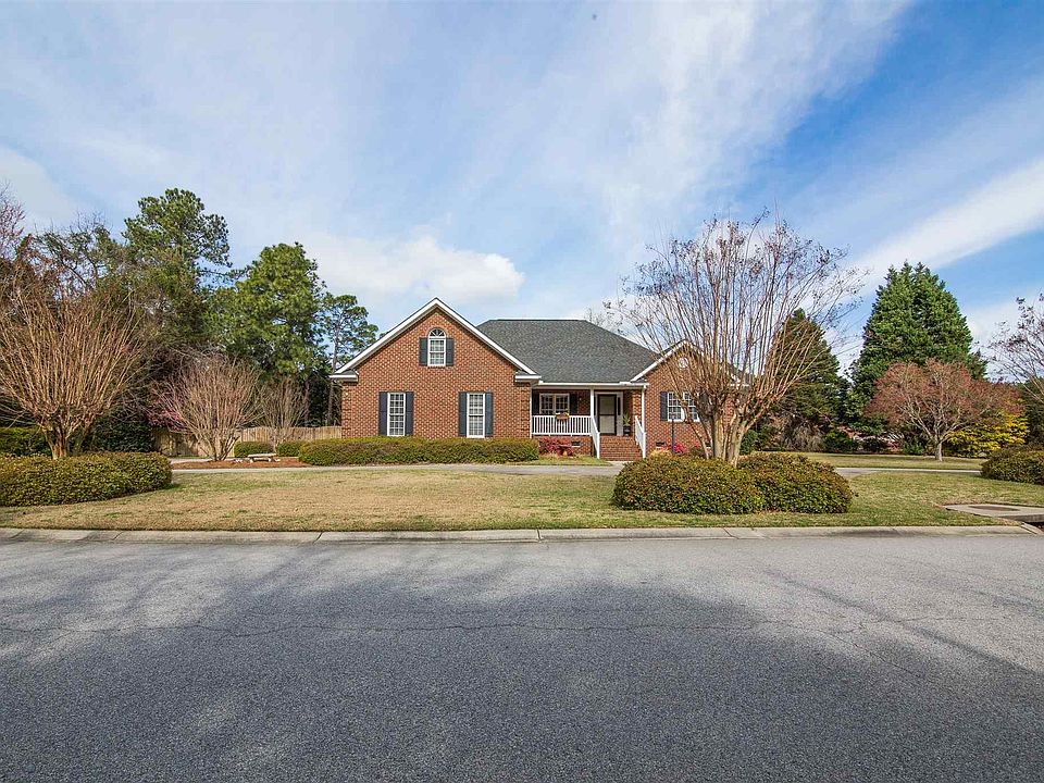 All the extras imaginable! This beautiful all brick custom built home in Hounds Run subdivision. 3 bedrooms and 2.5 bathrooms down with an additional office/bonus room as well as a huge FROG with a closet and full private bath. Circular driveway with extra parking pad, hardwoods in all living areas as well as master, his & hers closets and separated double vanities. Formal dining room and eat in kitchen that is open to family room. Large laundry room with sink. Kitchen has upgraded solid surface countertops and custom cabinets. .42 acre lot with backyard fully fenced, has drive gate for boats etc. Screen porch and deck with pergola, large utility room/shop off oversized garage, hot tub in back. Front has circular driveway with extra parking pad. Irrigation well allows you to water all summer at low cost. Lexington One schools, central vacuum, full gutters, and don't forget to check out the hundreds of square feet of walk in attic space off the FROG.