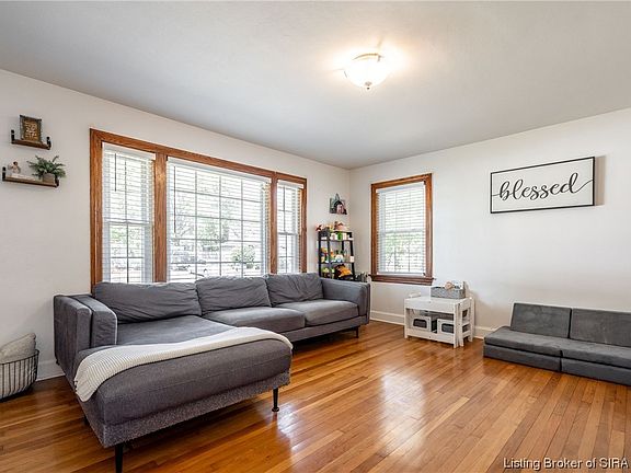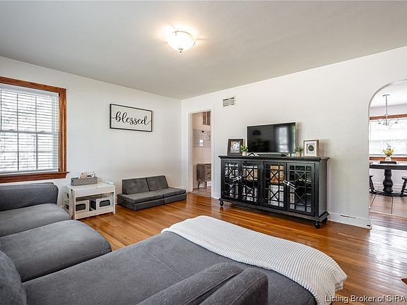100% financing with USDA! Home is located in a USDA eligible area. Charming 2 bedroom, 1 bathroom home nestled in a quiet neighborhood in the heart of Sellersburg for under $200,000! Featuring original hardwood floors, large bedrooms w/ double closets, custom faux wood blinds, newer windows, eat-in kitchen, large mudroom with washer and dryer (remains). Backyard is partially fenced in with a 1 car attached garage. All kitchen Stainless Steel Appliances remain in the home. New HVAC (2022), Main Drain to sewer replaced (2022), Water Heater replaced (2020). Call/text today to schedule a showing.