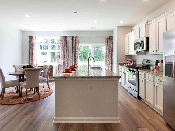 Move-In Ready!! The Denmark is a two-story townhome with a single car garage and doublewide driveway. located on a desirable pond homesite. Featuring a large kitchen island where everyone will be when you are entertaining. The home offers white cabinets, granite countertops in the kitchen, 5 burner gas range, refrigerator, dishwasher, microwave and garage door opener. Upstairs you'll find the large primary bedroom with cathedral ceiling with walk-in closet and huge 5ft wide walk-in shower, double vanities, two secondary bedrooms, bathroom and laundry room. Pine Hills in Cane Bay, Summerville, offers a serene suburban lifestyle. Nestled amidst lush landscapes and elegant homes.Residents enjoy nearby parks, shopping, and dining, making it a family-friendly haven with a charming southern atmosphere. Amenities include 3 pools, with a 2-story water slide. Nearby is the largest YMCA on the East Coast, and the community offers easy access to I-26. All new homes include D.R. Horton's Home is Connected® package, an industry leading suite of smart home products that keeps homeowners connected with the people and places they value most. This smart technology allows homeowners to monitor and control their home from their couch or across the globe. Products include touchscreen interface, video doorbell, front door light, z-wave t-stat, and keyless door lock all of which are controlled by an included Alexa Dot and smartphone app with voice! Call to schedule your showing today and start envisioning your new life surrounded by nature's beauty!