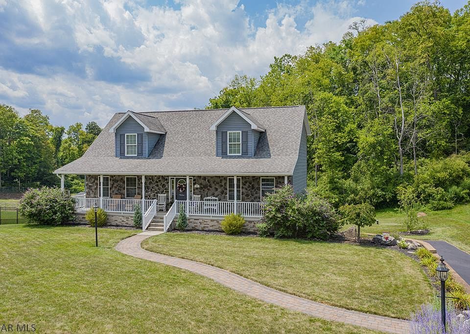 Cape Cod style home located in the highly desirable Rolling Hills North Subdivision! This perfect home has so much to offer including a large covered front porch, recently built covered back deck, first floor master suite, and first floor laundry.  Additionally, there is a finished walkout basement and 2 car garage. There is hardwood flooring throughout much of the first floor.  The eat-in kitchen features granite countertops, stone backsplash, and a large island.  The kitchen is open to the living room and dining room with access to the rear deck from the dining area. The lower level has a fireplace and can be used as a second living area, gym, or game room. The private backyard backs up to the woods and the deck provides space for relaxing or entertainment.