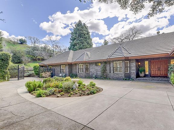 NEW PRICE!!! Step into the pages of Sunset Magazine; this Normandy style estate with 1.46 acres of flat land and a vineyard is a must see. Through the charming brick entry, step into a light, bright home with soaring ceilings, skylights, and modern amenities that will let you know you're still grounded in California. 4 secluded bedrooms, 3 bathrooms await you; expansive formal and informal living spaces invite you to create memories you'll cherish forever. The sprawling gardens and decks with 50 mature rosebushes, fruit trees, walnut trees, and so much more await your green thumb. The prolific vineyard has 100 vines of Petit Syrah; enjoy a glass of your own wine while you soak in the jetted tub in the master bathroom. New paint, new lighting, newly redone floors, a gourmet kitchen. The spacious master with zoned shower, jetted tub, 2 water closets, walk in closet, fireplace, and wet bar will become your sanctuary. The library/office will captivate and inspire you. Come see this beauty.