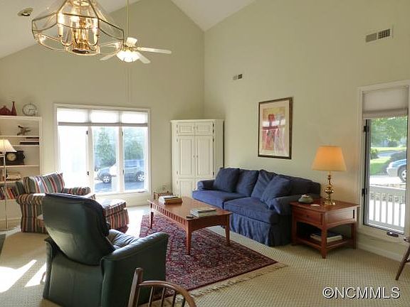 -Immaculate and move-in ready, this 2 bedroom, 2 bath home features an open floor plan, huge great room with gas fireplace and cathedral ceilings, large screened porch with mountain and pond views, open kitchen/dining areas, 2 large master suites, an open loft area which makes a great office, large laundry room and a single car garage with plenty of storage. Also a covered front porch with stone flower planters. Walking distance to Lake Louise!