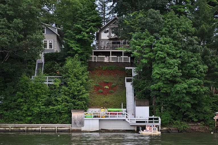 This Custom Built Lake House has been Engineered and Constructed with an eye to every detail. You will fall in love with this 3 BR - 3Bath House, and the Breath-Taking Lake View! There is a Private Master Suite on the Second floor loft, which overlooks the open floor plan LR - DR -kitchen area and Lake below. The kitchen is equipped with top-of-the-line S.S Appliances, Granite Counter Tops & Cherry Cabinets. Off the first floor is a large Deck and ascending stairway to your own Floating Dock. In the lower level you will find the Family Rm. & gorgeous 13 ft. Handcrafted Bar, along with it's own Private Patio & Lake View. This is a Quality Must See Lake Home! Approximatley 2250 Finished and Heated sq.ft.