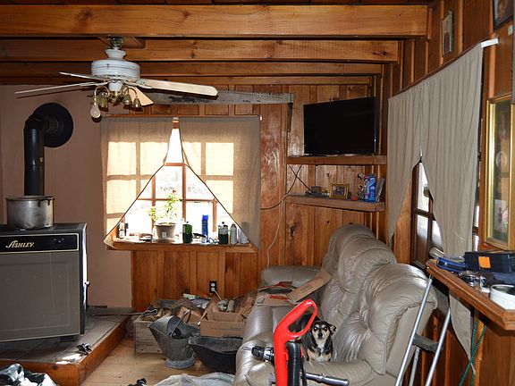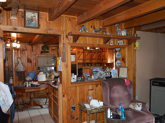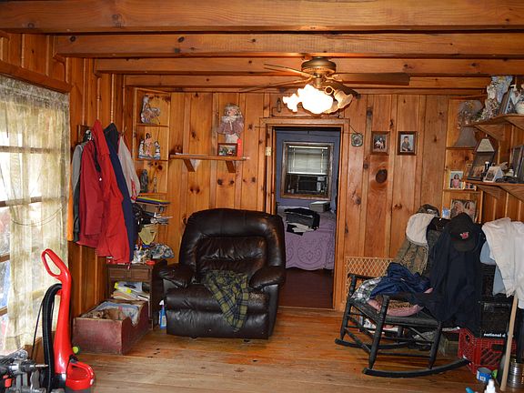 Rustic Cabin on mostly cleared land. Fenced for horses! This Cabin style 1 bedroom, 1 bath home is a great getaway hunting cabin or for the client that wants smaller rustic home. You must see inside this handcrafted wood interior that seller has taken great pride in his wood working ability! Wood Beamed ceilings! This home could easily be added onto. Wonderful solid wood handcrafted kitchen cabinets are a must see. Hardwood floors welcome you into this little treasure. Wood burning stove offers heat! Sit on covered front porch to enjoy the great outdoors. Long Road frontage on this 6 acre tract! Additional outbuildings offer great storage. This owner built home is waiting for cash or Conventional buyer to enjoy this structure! Seller relocating closer to family. Buyer to verify sq ft.