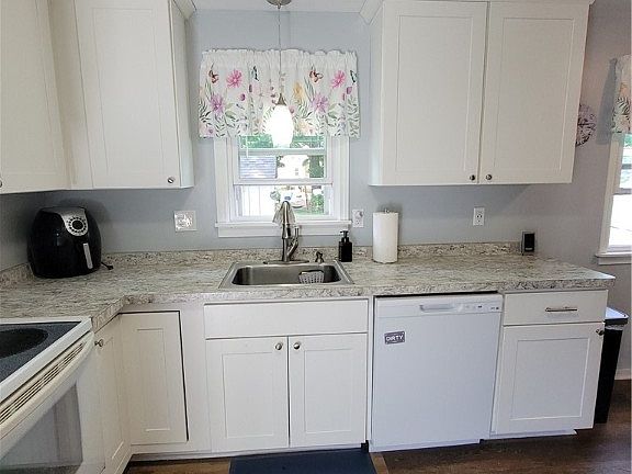 This is it! So many updates!! Second floor has finished room (with heat) that was used as THIRD bedroom by seller. It is not included in the square footage because unfinished attic space leads to the bedroom. Updates include windows, kitchen, bathroom, flooring, electric panel, plumbing, washer and dryer, glass block windows (2021), Furnace/AC (2021), Gutters, Dishwasher (2024), Front Deck (20204), shed! Tear off roof done 2015. All appliances included! Delayed negotiations July 10 - offers due at 5 pm.