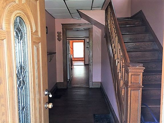 This home is a surprise! Beautiful wood walls decorate the family room leading out to the deck and to an above the ground pool. The spacious kitchen has lots of cupboards and style. Hardwood floors, bath on the first floor. Formal dining room and nice sized living room are separated with a pocket door. Natural woodwork and a first for laundry make for a great first level. 2 bedrooms upstairs with a full bath
