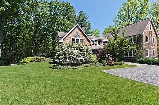 This unique Arts & Crafts Shingle style home combines casual living and sophistication with splendid views on nearly three acres. An open floor plan with transom windows, French doors, three fireplaces, and built-ins enhances the warmth and charm. The kitchen with its vaulted ceilings, skylights and fieldstone fireplace is a cook's dream and a family oasis. The lush landscape provides country living and privacy, while still just a five-minute stroll from Lincoln Center and 12 miles from Cambridge or Boston.