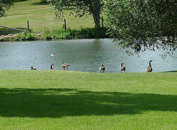 End of the road, secluded property that borders a large private pond. Nicely landscaped with lots of established trees along the back of the property, many deer and geese call this property home. Home has 2 bedrooms and 2 baths, open kitchen dining area, living room with native stone fireplace and access to the back sun room, attached 2 car garage, below ground root cellar, 24 X 40 Implement Shed, and all on a little over 4 acres.