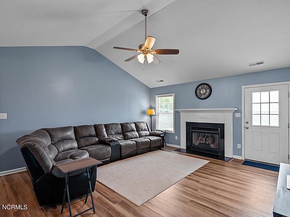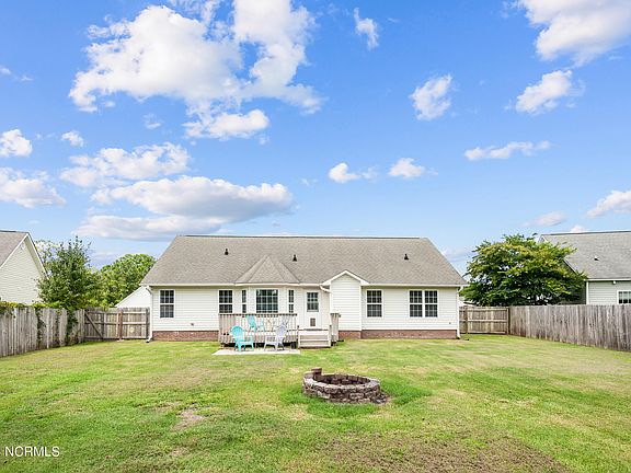 Welcome to your new home in charming Havelock! This beautifully maintained residence boasts 3 spacious bedrooms and 2 well-appointed bathrooms, offering comfort and style in every corner. An oversized room above the garage adds incredible versatility—ideal as a game room, media room, or even a 4th bedroom to suit your needs. Step inside to discover a stunning kitchen featuring sleek granite countertops, perfect for both casual meals and gourmet cooking. The expansive living room, highlighted by soaring vaulted ceilings and a cozy fireplace, creates a warm and inviting space that's perfect for relaxing or entertaining. The fenced backyard provides a private retreat, while the deck invites you to enjoy North Carolina's beautiful weather—whether you're hosting gatherings or simply unwinding after a long day. Located just outside the Slocum Gate of MCAS Cherry Point, this home offers a convenient commute to both the gorgeous beaches of the Crystal Coast and the historic charm of Downtown New Bern. Don't miss your chance to make this your forever home!