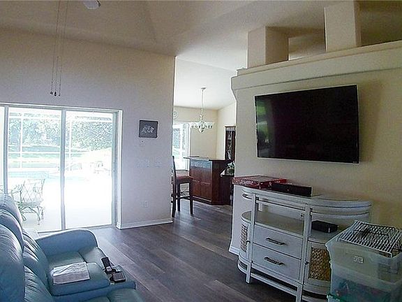 Incredible water view from almost every room in the home! The spacious pool home sits on a beautiful lot, with a gentle slope to the fresh water behind the property. Enjoy nature from the privacy of your own back yard with many species of fish, birds and wild life. The home has many special features including a very large aquarium window that over looks the pool and water. The split floor plan allows for spaciousness with the master bedroom on the left side of home and the two bed rooms on the right. Updated kitchen, with granite counter-tops open to the formal dining room and the breakfast nook. Very spacious great room plan, with "wood plank" look flooring overlooks the pool and water. The master bedroom is conveniently tucked away on the left side of the house offering a raised ceiling and access to the pool and lanai. It also offers a beautiful en-suite bath with a large dressing room area and closet. Two guest rooms sit privately on the left side of the home with a well appointed guest bath. The home is located in the golf community of Rotonda, with easy access to several public golf courses. It is a short drive to the beach with its turquoise waters and tropical views.