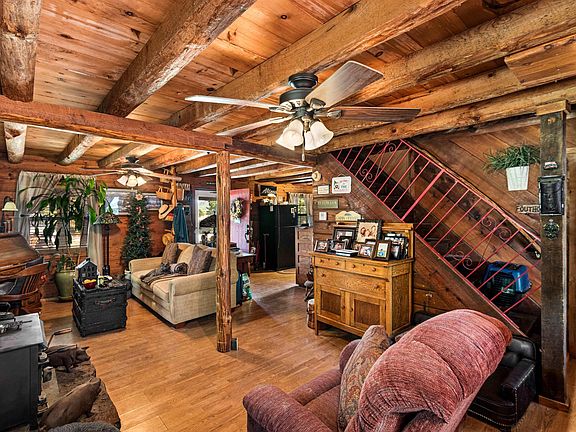 Discover tranquility in this charming 3-bedroom, 2-bathroom cabin on a sprawling 10-acre property, just 6 minutes from the White River and Crooked Creek. The cozy cabin features a spacious living area, an adorable kitchen, and three comfortable bedrooms. You'll love the serene atmosphere and the modern conveniences this home offers. The expansive grounds boast fruit trees, a storage shed, a dog pen, a goat pen, and a chicken house, providing everything you need for a self-sustaining lifestyle. Additionally, there's a versatile building with electricity that includes a loft, perfect for converting into another home or studio. Enjoy unparalleled privacy and seclusion while being conveniently close to outdoor adventures. Embrace a peaceful, self-sustaining lifestyle in this beautiful retreat!