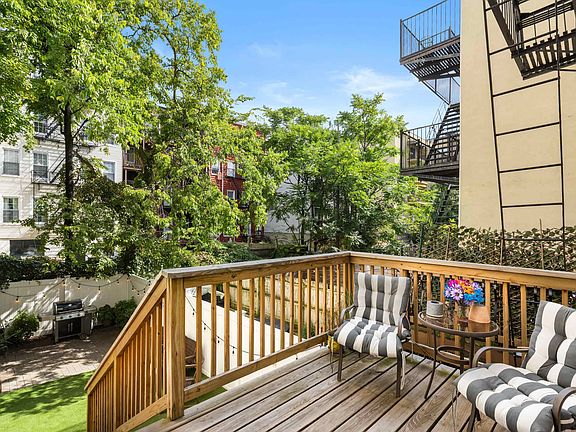 Welcome home to 227 Monroe Street #1L, where your own extra large private backyard and in-unit laundry steal the show. This bright and updated apartment on the parlor (not street) level has it's own private deck and renovated (in 2022) and deeded yard, complete with landscaping, paver patio, and turf. Relax, entertain, and BBQ year 'round by stepping out of your own back door! Inside is a newly (2023) renovated bathroom and a well equipped kitchen with granite counter tops, stainless appliances, including dishwasher, a breakfast bar, and plenty of clean, solid cabinets. Nine foot ceilings and recessed lighting throughout the unit ensure it feels bright and open, and the 2023 addition of crown molding adds class and charm. Have no fear for laundry day with your very own full-size LG washer and dryer in the home, making every day laundry day if you want! There's just the right amount of exposed brick in the bedroom and kitchen to bring in the old Hoboken charm, and storage nooks throughout the space make use of every inch. Call for your appointment before someone else does! Inquire with listing agent re: pets and parking options that are available.