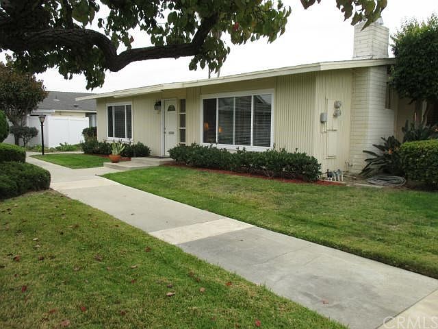 Upgraded single level property within walking distance to the beach. This spacious end unit is light and bright with an open floor plan and generous back yard with covered patio. The interior is meticulously maintained and features a large living room with travertine surround fireplace and built in bookcase, stunning high grade wood tone laminate flooring, new window blinds, oversized sliding doors leading to a beautiful covered patio and succulent garden with an orange tree, neutral tile flooring in the kitchen, dining area, hall and bathroom, spacious master bedroom and fresh designer paint throughout. The property has a detached single car garage and an assigned parking spot, both very close to the unit. The 55+ community HOA covers Water, Trash, Basic Cable, exterior maintenance and fire hazard insurance.