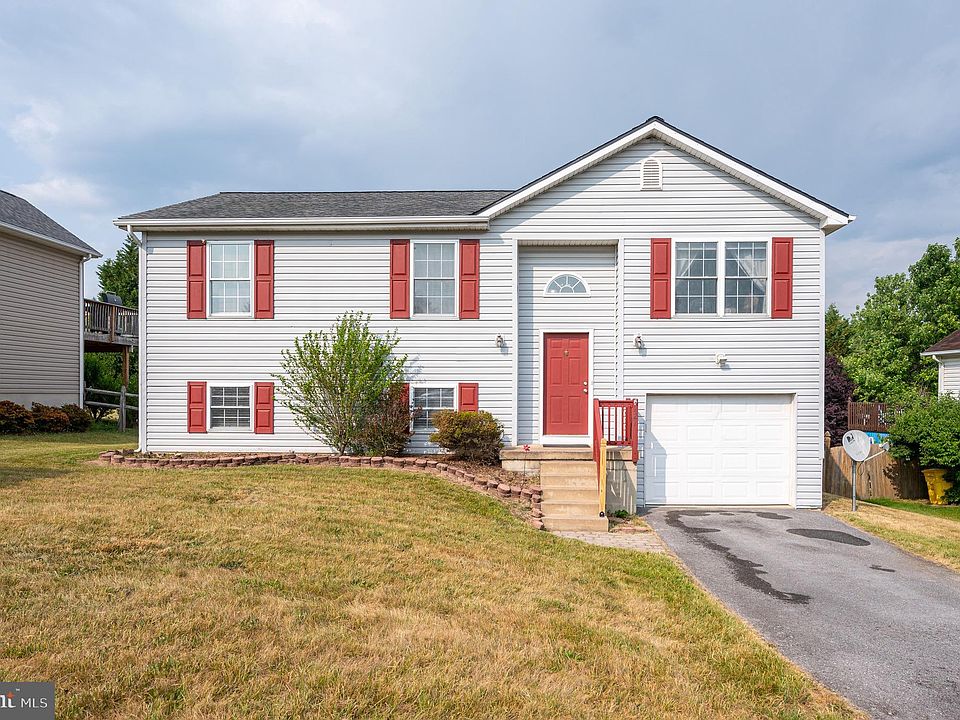 Come see this affordable single family home in the Wildflower Ridge community! This 4 bedroom 2 full bath split foyer home features a newer 30 yr architectural shingled roof, an upgraded interior trim package with chair and crown molding, laminate hardwood flooring, and a fully finished basement that can be used as a primary suite with large walk-in closet and primary bath with ceramic tile and decorative listello or use as a spacious rec room with endless possibilities! Outside you will love spending time on your deck overlooking your expansive backyard. Make this your home sweet home today!