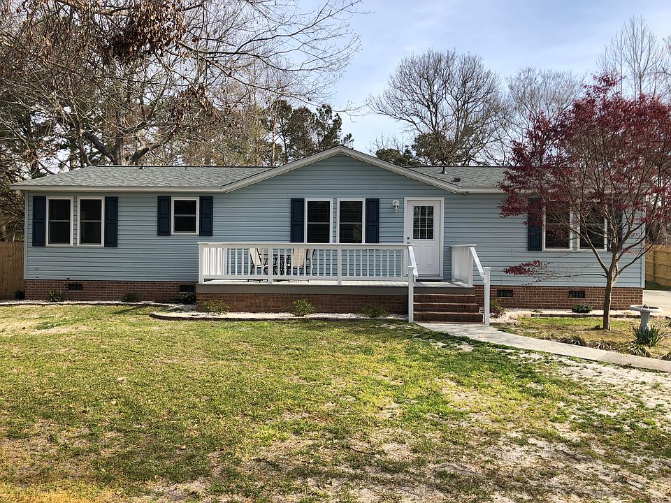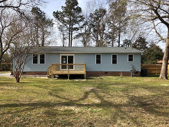 Welcome to this lovely one story home! This is a must see! Beautifully, completely renovated, this 3 Bedroom, 2 Bath home features an open concept floor plan for easy entertaining and spacious living. The impressive custom kitchen with tile backsplash has abundant storage and stainless steel appliances. Renovations include: high efficiency windows and exterior doors, HVAC - 3 ton Heat pump, sliding glass door with built-in blinds, electric fireplace with built-in entertainment system, crown molding, washer and dryer, new roof, outlets, switches, fixtures, and electrical upgrades. Each bedroom boasts its own spacious walk-in closet, newly installed carpet and ceiling fan. The master bath has all new walk-in shower, toilet, large vanity, fan, and flooring. New laminate flooring just installed in the dining-kitchen-living room-nook areas and fresh paint throughout. There is gorgeous river rock landscaping in the attractive flower beds and mature trees giving great curb appeal. Enjoy an large 12x12 newly constructed back deck and front porch. Located in the award-winning Topsail School district, you will love being only a short drive from the beach, shopping and many restaurants. Boat ramp on the ICWW is only 1/2 mile away! Available to show with little notice. Come check it out. The pictures really don't do it justice. Call Russ at 910-899-7844