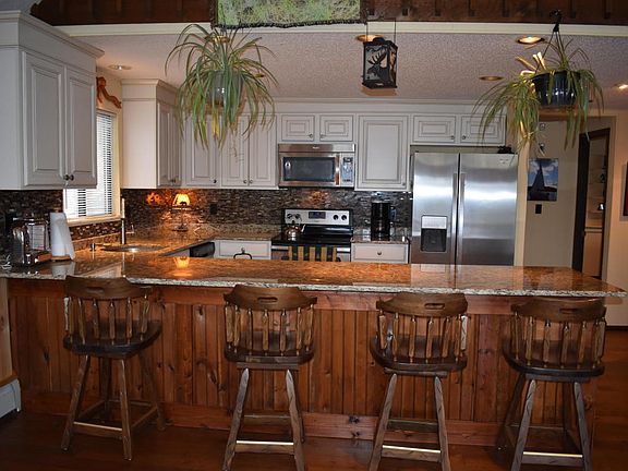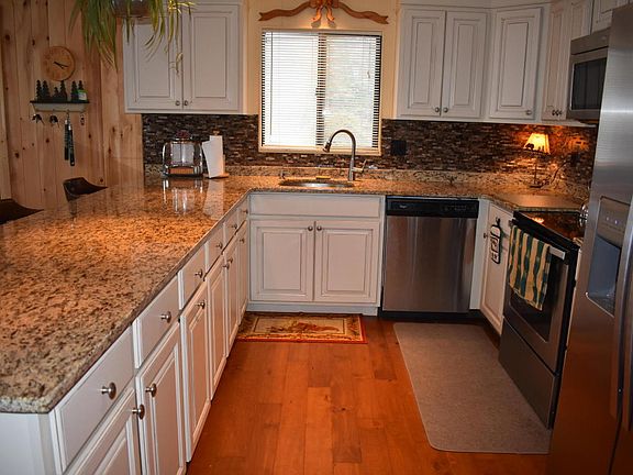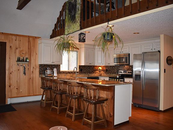 BREATHTAKING VIEWS - spacious four season lakefront home features open floor plan with hardwood floors, wood burning fireplace in living room, modern kitchen with granite counters and breakfast bar, dining room, master bedroom suite plus 2 additional bedrooms, loft/office, 2 car heated garage and rec/game room. Enjoy the beauty of the lake from the large deck or sit around the fire pit and gaze at the stars. All of this on a double lot and 100 feet of lake frontage and only 1 mile from Child's Park waterfalls! Don't miss out!