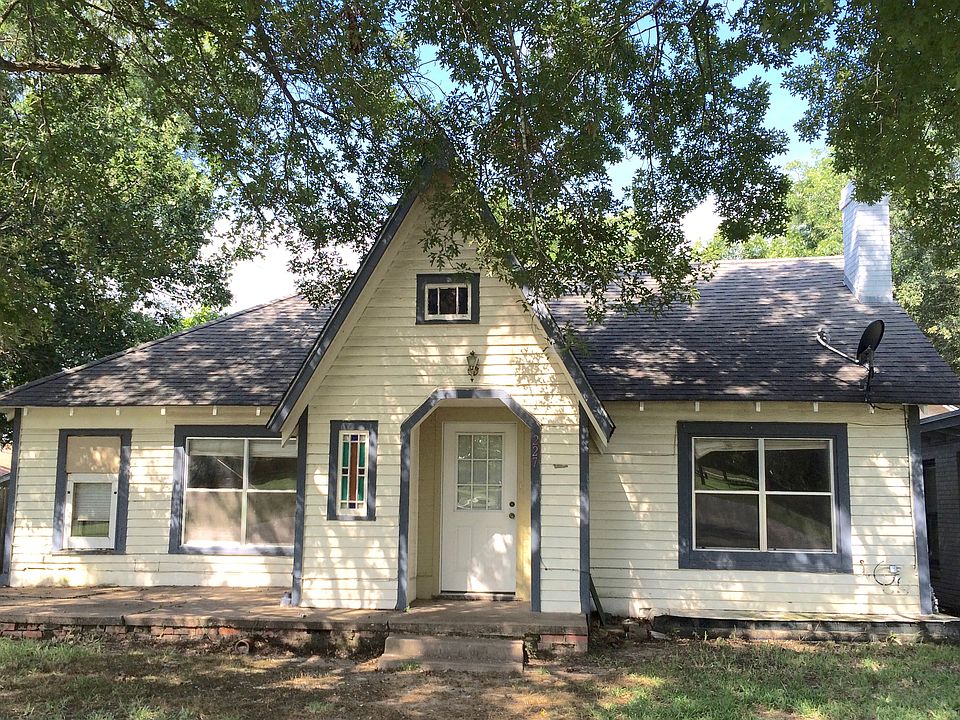Lovely, unique home built in the 1930s. Has formal dining room, extra-large bedrooms, remodeled bathroom, new stainless steel refrigerator and dishwasher in kitchen, gas cook stove and room heaters, utility room with washer and dryer connections, beautiful antique fireplace in living room. Large shop adjacent (previously a florist shop), nice-sized storage building out back, car shed, shade trees (including several large pecan trees, a plum tree, and a pomegranate tree). Nice back yard with privacy fence. Excellent location--nice neighborhood only one block from elementary school. Ready to sell, will consider all offers.