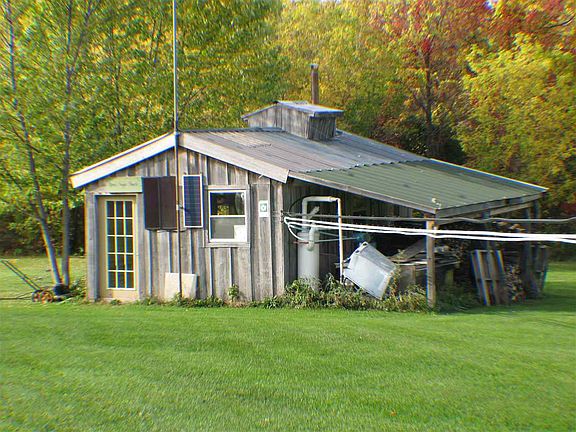 This is a one bedroom home but you can make it a three bedroom. Environmentally friendly home. Maple sugar shack and farm. Gardens, fruit trees, and room for your animals to roam. Solar and wind powered efficiency all set up for you to enjoy. Off the grid living. Gorgeous kitchen with hickory cabinets, efficient appliances and stainless counter tops. No utility bills.
