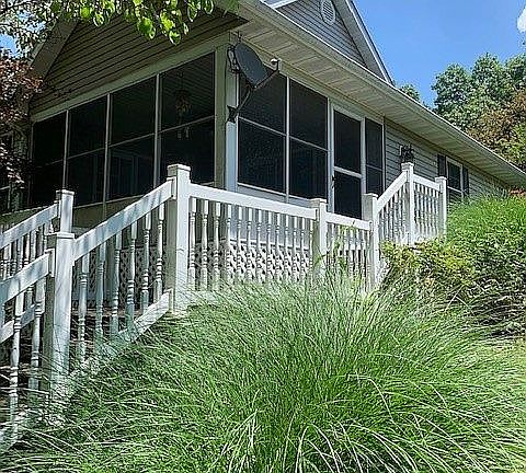 A truly unique home. Tons of privacy and backed up to natural forest setting. The home has been renovated with brand new carpeting throughout. Vaulted ceilings with fireplace, large floor to ceiling window wall all overlooking the forested bluff & 2 open vaulted dormers with windows for natural light making this large space feel comfortable w/ a great view. The home flows perfectly with no wasted space and a seamless transition to the outdoors. This 3 bedrooms 2 full bath home has surprises at every corner. Master Bedroom features a fireplace, bay window, and spacious en suite bath with large walk-in closet. The spare bedroom has 6' atrium door to the screened porch so connected from nature at all sides. The screened porch can be converted to a four-seasons room. Full walk-out basement intentionally built with ample ceiling height to accomodate being finished. 2 car attached garage with extra wide drive for turnabout and side entry. This home is loved with no detail overlooked.