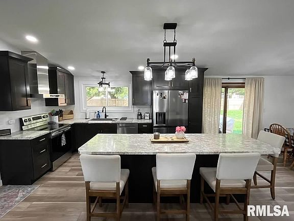 What a transformation!! ALL NEW since 2022: roof, gutters, garage door, garage electric panel & extra lighting installed, fully fenced backyard with double gate, landscaping added, some interior doors, lighting and flooring throughout and interior has been completely repainted! The kitchen has undergone a massive remodel with high-end upgrades from opening up a wall, showing off an exposed beam, all new stainless-steel appliances conveying, custom maple cabinets with soft close drawers, trendy brass hardware, LED recessed lighting, and a massive island with tons of seating make this a kitchen of your dreams! Renovated full bath with new vanity, toilet, exhaust fan, paint, fixtures, etc. The full basement has a poured foundation, massive utility room with laundry hookups, generator outlet installed & water softener conveys. There's a 21x24 family room that is drywalled, has industrial painted ceiling and a concrete floor. Must see this magazine-worthy home and enjoy small town living at its best!