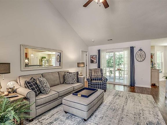 Charming 3BD/2BA ranch with beautiful backyard views in neighborhood with wider lots! You'll feel right at home walking down the sidewalk to the front door. Step inside and know you made the right choice! Vaulted ceiling in the great room which overlooks the screened porch to the backyard. Kitchen with granite and plenty of shaker-style cabinets with crown molding and soft close cabinets is adjacent to the living room. Breakfast nook is perfect for dining. Split bedroom plan with master offering tray ceiling, walk-in closet and master bath with double sink, 5' shower and comfort height vanity. Two guest bedrooms (one with vaulted ceiling) and bathroom with comfort height vanity on opposite side of the home. Vinyl flooring throughout except carpet in the bedrooms. Additional features include: front storm door, gutters, 2" blinds, oversize patio, lawn irrigation, pull-down attic stairs, partially floored attic, plus transferable termite bond with Home Team Pest defense. Bucksville Oaks' HOA offers neighborhood pool, boardwalk to the river (no flooding here), and trash removal. This won't last long!