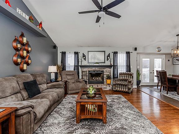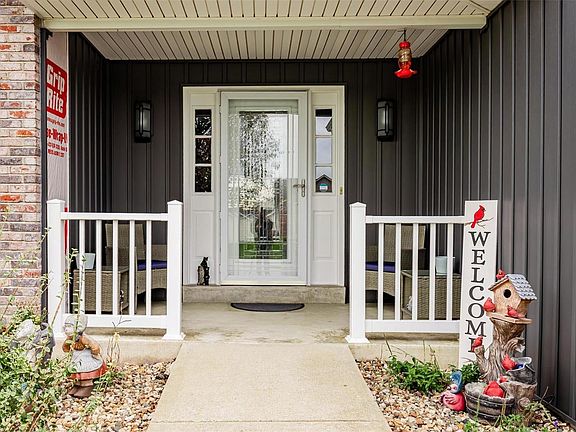 This one is like new!!  All New Siding, Facia, Roof, Garage Doors to start!! This Lovely 3 Bedroom, 2 bath home has a Updated Kitchen w/Granite countertops, tile back splash, Black & Black Stainless Stove, Microwave & Refrigerator, Beautiful Tile Flooring & a Breakfast Bar. Vaulted in Kitchen/family/ Main Bdrm. New flooring thru out the main floor w/updated lighting fixtures & fresh paint. Suspended Shelves in various rooms!  Double doors to Master Bedroom, &  Bath w/garden separate tub & shower & Wall Mounted fireplace, Title Walls, Double Sink Vanities  (like an spa) & walk in Closets. French door that walks out to a composite Deck with White Railings.  Mainflr family room with a Wood Burning Fireplace too! Iron Railings on new carpeted stairs to clean & easy to finish 9' pour basement.  Roof replaced Oct 2023. French door that walks out to a composite Deck with White Railings. Beautiful Front Door & Covered porch! This is a truely well cared for Gem!