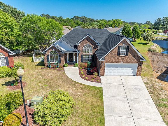 NEW ROOF INSTALLED APRIL OF 2025! Spacious four-bedroom, three-bath home nestled on a peaceful cul-de-sac in the desirable Hillsborough community.  This thoughtfully designed split-bedroom floor plan features LVP flooring throughout, with tile in the bathrooms. The inviting living room boasts vaulted ceilings with a fan, a stunning stone fireplace, and charming cedar wood accents. Adjacent to the living room is a bright and airy Carolina Room, wrapped in glass, complete with a ceiling fan and fireplace—perfect for year-round enjoyment. The formal dining room showcases stylish shiplap walls, while the kitchen is a chef’s dream with stainless steel appliances, butcher block countertops, a tile backsplash, white cabinetry with open shelving, a pantry, an eat-at bar, and a cozy breakfast nook framed by bay windows. The primary suite features a tray ceiling with a fan, large picture windows, and a private en-suite bath with a double vanity, a jetted tub, a walk-in shower, and a spacious walk-in closet. Two additional first-floor bedrooms include ceiling fans and share a full-size hallway bath. The functional laundry room offers cabinetry and a mop sink for added convenience. Upstairs, you'll find the fourth bedroom complete with a ceiling fan, walk-in closet, full bath, and additional attic storage. The backyard provides a fenced-in area, an attached storage shed, a concrete patio, and picturesque views of the pond—ideal for relaxation and outdoor gatherings. The finished garage boasts epoxy flooring and a storage closet. The Hillsborough community features a pool, basketball court, tennis courts, playground, pickleball, and much more. Conveniently situated near shopping, dining, entertainment, downtown Conway, and it’s also just a short drive to the beach. Square footage is approximate and should be verified by buyers.
