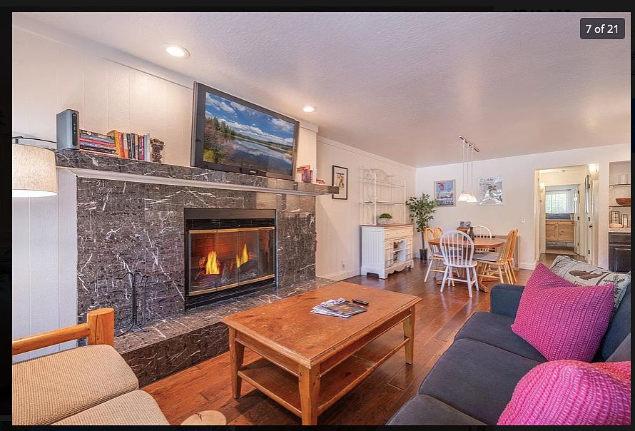 This 2-bedroom Tavern Inn condo is ideally situated at the entrance to Olympic Valley, offering convenient access to Palisades Tahoe and easy access to the ski slopes. Ideal for small family, local people working in the valley. It features an open floorplan on a single level, only 2 steps up from the designated parking area, ensuring easy accessibility. The condo is designed for low maintenance with hardwood floors, granite tile countertops, and a covered front deck that eliminates tedious snow removal, and stays cool during summer months. The living area includes a cozy setup with a wood burning fireplace, ideal for relaxing, playing board games, or watching your favorite shows and movies. Stroll over to the Village at Palisades Tahoe or hop on the nearby bike path that leads you along the Truckee River to Tahoe City or Truckee. Amenities include one tennis court, a pickleball court, a swimming pool, jacuzzi and sauna. Apartment is fully furnished. Utilities not included.