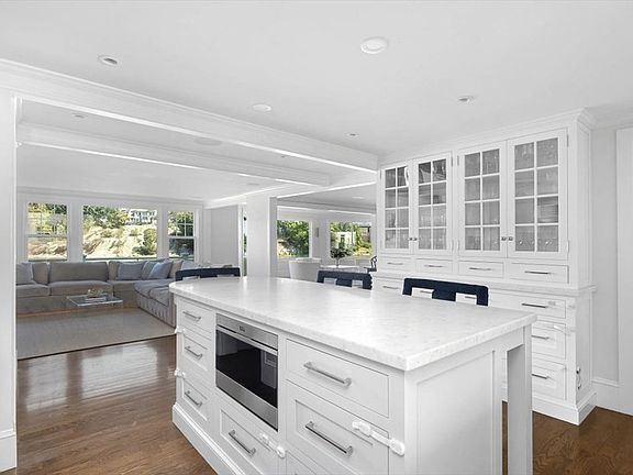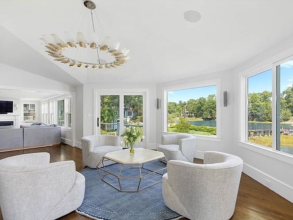 Stunning Waterfront LUXURY Home on Hingham Harbor. This GORGEOUS seaside Colonial was renovated in 2017/2018 and designed by Sally Weston.It is an entertainers dream with a Faneuil Chefs Kitchen w/ marble countertops, top of the line appliances, a butlers pantry, an Open Floor Plan Family//Dining Room w/PANORAMIC views of the water, a Formal Living room w/ a f/p, a laundry and access from all the first floor rooms to an INCREDIBLE wrap around porch. The second level offers a DELUXE Primary Suite with 2 w/in closets,a SPA like Bathroom, a Private Rooftop Deck overlooking the water and 3 additional well appointed Bedrooms w/access to a full Bath. The third level is the perfect Guest Suite w/ a 5th Bedroom, a full Bath and an Office/Game Room w/ custom built ins offering SWEEPING views of the water. Enjoy watching sunsets and swimming and boating with the direct water access from your own Private Pier. Located a short drive to Downtown Hingham and the Commuter boat/ train to Bos