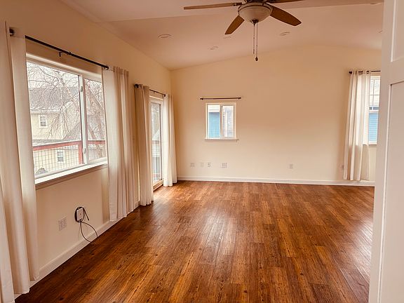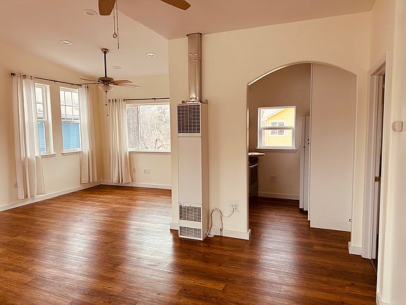 For Rent in Lyons Oct 1, (or sooner). Newly upgraded, Private, spacious, light filled studio on Park St., for 1 person. Unfurnished 660 sqft. Above garage, separate from house. Tall ceilings, windows all around, large deck, large bathroom, full kitchen with plenty of storage. Washer and Dryer. Has on demand hot water, gas heat, swamp cooler. Will have AC for next summer. Internet is ready for you to hook up. Off street parking. Small grassy yard with flower beds and vegetable gardens. Situated between Bohn & Sandstone Parks, with view of the river and Steamboat mtn. Just a few blocks from downtown Lyons, 15 minutes to North Boulder and Longmont. Were looking for one eco-minded person, and would prefer an individual who doesn't work full time from home. NO SMOKING OR PETS. 1st and last month's rent, damage deposit and references. $1500 a month, plus a portion of utilities (average $45 to $85 a month). Trash and Lawncare/Snow included. 6 month or 1 year lease. Share utilities that average $45 to $85 per month. Trash and Lawn/Snow included. NO PETS. NO SMOKING. Off street parking for 1 vehicle. Washer and dryer included. Studio is above a garage (stairs) in a separate building.