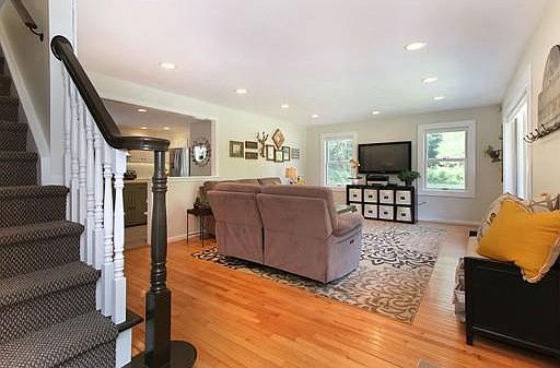 This is definitely a home that you need to see to truly appreciate all that it has to offer. The home is situated on a private lane off the road, it has a fenced in yard with a beautiful brick patio and an enclosed yard for outdoor fun. The kitchen has been recently renovated with white quartz, stainless steel appliances and a large eat at peninsula. The living room/dining room share a peek a boo fireplace both have hardwood floors and the living room has cathedral ceilings and a loft area. There is also a spacious family room with hardwood floors with an open flow to the kitchen This home has so many details with the oversized moldings, wainscoting, board and batten and raised panels throughout the house. The second floor has 3 large bedrooms, the master suite has a fireplace, hardwood floors 2 closets and a master bath with a soaking tub. The other 2 bedrooms have newer wall to wall carpets and large closets with custom built-ins. Truly a pleasure to show.. WELCOME HOME!!