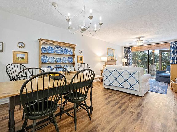 Welcome to this lovely ground floor 2-bedroom, 2-bathroom condo in the charming True Blue community! This bright and airy unit features beautiful flooring throughout, with fresh paint, counter tops, appliances and meticulous upkeep. The spacious living and dining area opens up to a quaint screened patio, where you can enjoy serene views of the golf green through the trees. The owner's suite offers direct access to the patio, along with a walk-in closet, ceiling fan, and an en-suite bathroom featuring a shower/tub combo. The guest bedroom is generously sized with a nice closet, and there’s a full guest bath nearby. Outside, you’ll find a convenient storage closet for your extra items. This unit is a gem! True Blue is set on a stunning Mike Stranz-designed golf course, recognized as one of the best by Golf Digest. Residents have access to wonderful amenities, including multiple swimming pools, tennis courts, and a clubhouse with a restaurant. Located in Pawleys Island, you’ll be just moments away from beautiful beaches, fantastic dining, shopping, and a range of outdoor activities like fishing, boating, and kayaking. Don’t miss this excellent opportunity—schedule your showing today!