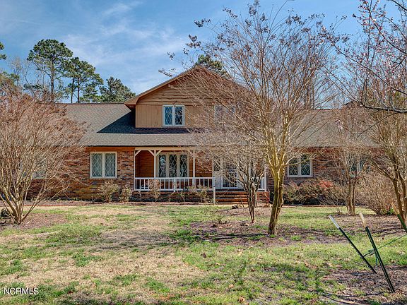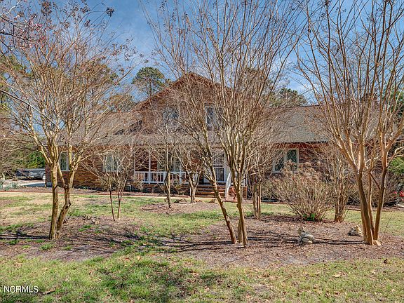 Olde Point brick home is located in one of the most desirable neighborhoods in Hampstead. The home has 4 bedrooms with 3 full bathrooms, and a spacious floor plan. Kitchen has updated with stainless steel appliances. The large living room features a wood burning brick fireplace. Upstairs has new wood flooring throughout. Large outside deck with new trek decking overlooking the 15th green and 16th tee box. The .62 acres has beautiful plantings with irrigation and full property underground electric fencing. The 24 X 13 sunroom is a must see. Additional updates to this home are, newer roof & gutters, new windows, exterior painting, newer HVAC, updated electrical for house generator hookup, newer hybrid water heater, LED outside lighting, and a large two-car garage with plenty of storage space along with an outside storage building. Lots of parking. Deeded water rights. Golf course views.
