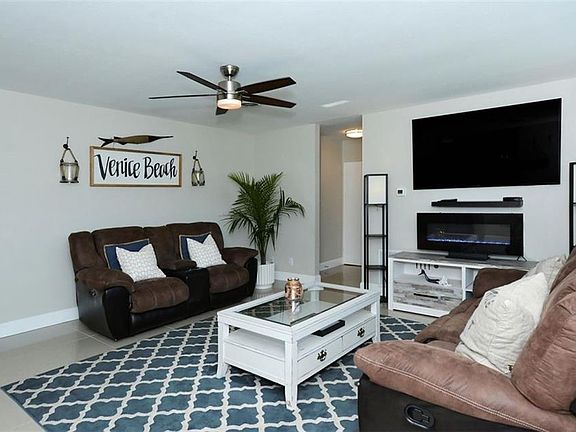 PRICED TO SELL! INCOMPARABLE VALUE. A TOTAL MAKEOVER with new metal roof, HVAC, hurricane impact resistant windows, kitchen, baths and flooring. Contemporary design with clean lines in warm shades of greige. Luxurious elements include granite, white shaker cabinets, SS appliances, porcelain tile floors, 2 sets of French frosted glass doors to study and/or master bedroom suite. A wall of sliding glass doors from the study and/or master bedroom open to a 12' X 28' under roof and screened lanai. The driveway extends to the side of the garage, where an RV, boat or large (including lettered commercial) vehicle may be parked outside. An expansive backyard can be fenced, with plenty of room for a pool ... survey available. All public utilities on site and operational, including public water and sewer. Voluntary optional membership is available at the Venice Community Center for only $120/year (pool, playground, recreation center). And, minutes away are the beaches, quaint shops, restaurants, fishing, boating, tennis courts, golf courses, Legacy Bike Trail, repertory theatre and other cultural and recreational activities of Venice and Venice Island.