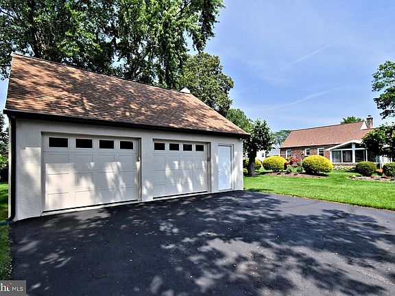 Don't miss out on this meticulously maintained "one of a kind" brick cape cod in the much sought after Souderton Area School District. Incredible curb appeal, professionally landscaped exterior offers a variety of mature shrubs, colorful flowers, shade trees, flower beds, path lights, and an irrigation system. Need garages we have two! - One attached and another detached! The easy access, detached, oversized two car garage(28' X 28') features block construction, repainted 2023, roof-gutter-downspouts-2019, overhead insulated doors replaced 2020, electric openers, keyless entry, epoxy floors, wood stove heating, extra ceiling lighting, lots of second floor storage. Open construction-no columns or supports- gives you the entire area for use. Store antique cars, your old muscle car, and still have room for exercise equipment, hobby stuff, tools, kids toys, up to you-the space is yours! Enter through the custom matching storm door and keypad locking front door. All you need to do now is move in and enjoy. This interior is cleaner than clean, you will think you are in a model home. The first and second floor have been professionally painted (Sept-Oct-25), LVP (installed Sept-Oct-25) in the living room, dining area, kitchen, hall and closet, and first floorbedroom. Carpet (installed Sept-Oct-25), up the stairs and in both second floor bedrooms. Cooking will be a breeze in the kitchen featuring; subway tile backsplash, Quartzite countertops, refinished cabinets, stainless steel sink with garbage disposal, Frigidaire stainless steel appliance package (installed 9/25), under cabinet and under peninsula lighting, recessed lighting, and a unique built in spice rack, and ironing board. A walk-in closet with cabinets with soft close drawers, and clothing rack provides additional storage. You will be absolutely impressed with the full bath-custom granite top vanity, ceramic tile floor with electric radiant heat, walk in shower with ceramic tiled privacy walls with glass panels, glass door, rain shower, shower niches, conveniently located shower controls, built in linen closet, safety grab bars (shower and lavatory), comfort height lavatory, recessed lighting. Both second floor bedrooms are nice size, and have adequate closet space. The partially finished basement includes an office, family room with a wood burning brick fireplace, and a full bath-walk in shower, shower niche, vanity with subway tile backsplash, tile floor, comfort height lavatory, recessed lighting. The unfinished section of basement has an epoxy floor, outside entrance-epoxy steps to a exterior cellar door, and various mechanicals- Lennox AC (5-22) Lennox furnace (6-08), Bradford electric water heater (2-23), Lancaster water softener (10-23). Check out the attached one car garage with epoxy floor, insulated garage door, electric opener, keyless entry, and laundry area. You will spend quality time enjoying the spacious Florida/Sun room (carpet installed Sept-Oct-25)-cathedral ceiling, trapezoid windows, horizontally sliding windows, and a glass sliding door to a paver patio. Last but not least a 28 X 28 detached, block, two car garage-insulated doors, electric openers, keyless entry, epoxy floor, extra overhead lighting, lots of electric outlets, work bench, storage cabinets, pull down steps to second floor storage, and wood stove heating. Just a reminder- amazing garage to store your antique car, your favorite muscle car, family car, kid’s toys, yard tools, detail cars, use as exercise space, convert to game area, or almost any use or hobby you might enjoy, "man cave" or "she shed"! Roof and gutters, replaced,-House (2023), detached garage (2019) Won't be easy finding another garage as nice as this one! Make your appointment today! Please review the "Features" list provided in Bright MLS. This property is NOT a flip.