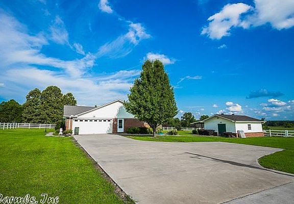 Brick home sits on 4 acres fully fenced and cross fenced, ready for horses or livestock. Home has a fully updated gourmet kitchen with quartz counter tops, high end stainless appliances, beautiful wood laminate flooring flows through most of home and baths have tile flooring. Open floor plan, large utility room with sink, a cozy sun room off the living room (can you say Christmas tree area?) Very nice size bedrooms, large closets. Best hidden feature is additional 400sf living space in detached building.