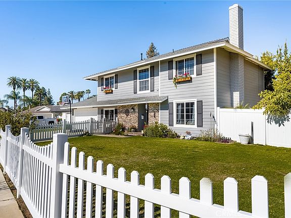Welcome to this turnkey two-story home located in a highly desired neighborhood in Placentia. This gorgeous pool home offers 5 bedrooms, 2.5 bathrooms, 2,080 square feet of living space and an amazing corner lot. As you walk up the brick entry way and enter through the Dutch front door you are greeted by an open concept floor plan with plank tile flooring, and a family room and dining room that is open to the large kitchen and bar area. The kitchen offers cottage cabinets, a farmhouse sink, beautiful granite countertops, marble backsplash with a custom mosaic oven backsplash, stainless appliances, and plenty of pantry space. The fireplace is customized with a marble hearth and a herringbone fireplace surround. There are canned ceiling lights and double paned windows throughout the home, and a separate laundry room. There is also bedroom downstairs along with a half bath. Upstairs there is luxury vinyl plank flooring with 3 bedrooms and 2 full bathrooms. The 5th bedroom option is a master retreat that can be converted back to make a 5th bedroom if needed. Step outside through the French doors into the large backyard which boasts a pool, side yard, patio and gazebo to entertain your guests. The front yard is enclosed with a white picket fence which will keep your pets and your little ones safe. The home is walking distance to Brookhaven Elementary, Tuffree Middle and El Dorado High School. Just blocks away is Tri-City park with biking and walking trails, fishing, playgrounds, picnics and pickleball courts for your pleasure. The home is near great restaurants and shopping. With relaxation and entertainment in mind, this home does not disappoint. Come tour the home for yourself and enjoy this amazing family neighborhood.