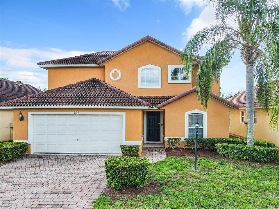 This home is a beautiful open concept two story home with no rear neighbors, located on the ever-popular Lake Wilson Preserve, minutes to Champions Gate with golf courses, shops and restaurants. The home is fully furnished and is turnkey ready for a permanent home or vacation rental. The living room has a cathedral ceiling and plenty of seating for all the family. A benefit with this home is a secondary master bedroom with adjacent bathroom on the ground floor, giving great flexibility in the accommodation. There is a covered lanai for those quiet outside meals. The AC was replaced in 2022. Lake Wilson Preserve is zoned for short term rental and with great access to I4 and easy drive to Disney this home has a strong rental history via the current property manager. The monthly HOA fee includes the supply of basic cable TV service, and yard care.