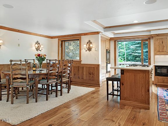 Pristine location on Vail Mountain above Vail Village with close proximity to ski-in from Bear Tree Run. Completely renovated with custom finishes throughout. This 5-bedroom residence features master wood craftsmanship including timeless hardwood floors, impressive wood beams, detail trim, cathedral ceilings, an open kitchen with panoramic views, and elegant marble bathrooms. The 5th bedroom ensuite is designed as a caretaker apartment and could make a fun family room complete with a kitchenette. Other features are custom built ski racks and cubbies, a heated garage and heated driveway. The exterior boast extensive custom stonework including an expansive terrace and stepways. Enjoy the private hot tub with views of the surrounding aspen trees and mountains. The White River National Forest is your neighbor.
