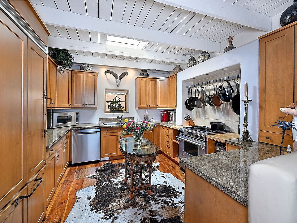 This property offers investment potential with short term rental capability. Nestled above town, this split level adobe conveys Santa Fe history, with portions of the home over 100 years old. Some walls are steeped in history and feature thick adobe walls dotted with bale hay chips that remind you-this could only be Santa Fe. The residence features plenty of modern upgrades too. The kitchen is a dream, with granite countertops, and a generous gas range.